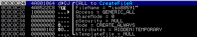 0x4a84903c, # becomes eax (import for CreateFileA)